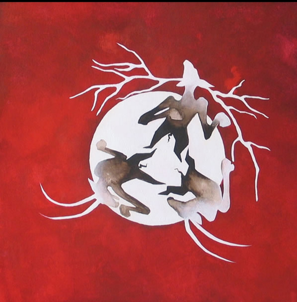20 x 20 cm, © 2006, verkochtTweedimensionaal | Schilderkunst | Aquarelvollemaan bokkedans