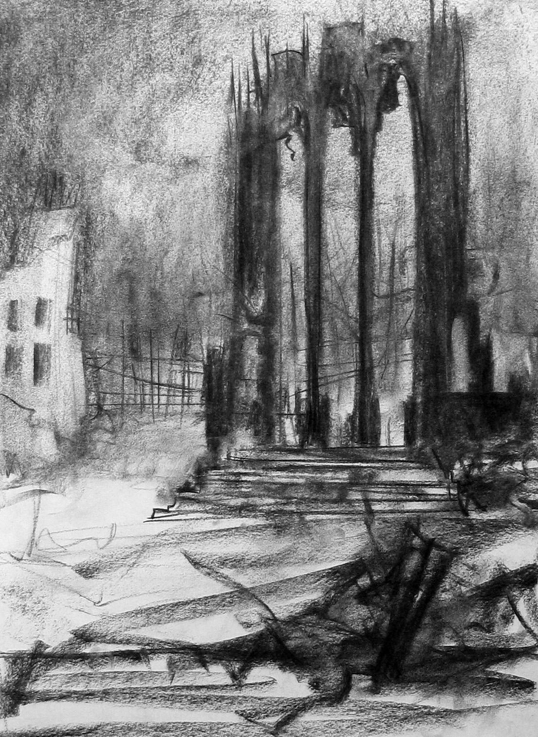 60 x 40 cm, © 2009, € 300,00Tweedimensionaal | Tekenkunst | Houtskoolhoutskoolstudie tijdens burn-outperiode