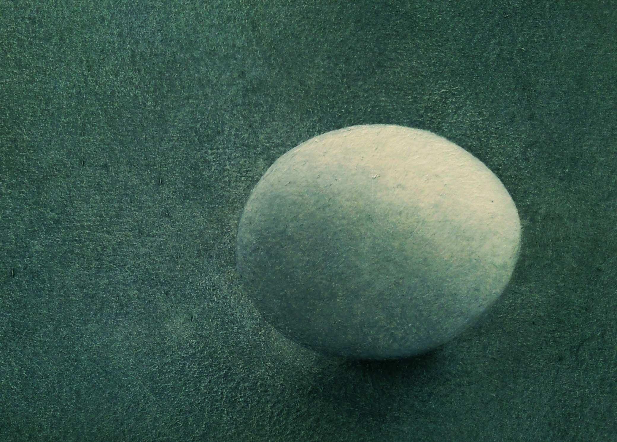 Een van de eindeloze reeks eieren die we schilderden als kennismaking met nieuwe materialen. Dit schilderijtje had een basis van casseinetempera, verder afgemaakt met olie verf en medium.