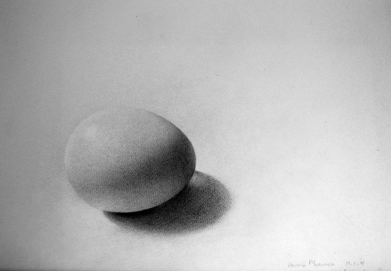 30 x 40 cm, © 2008, verkochtTweedimensionaal | Tekenkunst | Stift / Krijt / Potloodstudie van een wit ei op wit papier