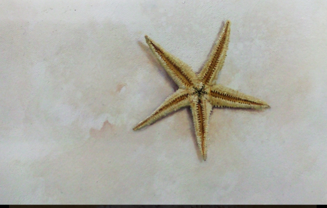 9 x 15 cm, © 2010, prijs op aanvraagTweedimensionaal | Schilderkunst | Olieverf | Op papiergedroogde zeester olieverf